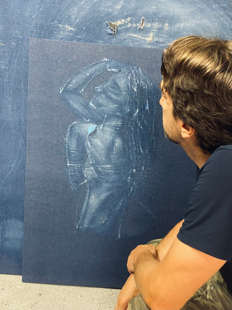 Born in Genoa in 1976, he began his creative practice with the use of various materials includingwood, iron, resin and acrylic paint. In the recent years he has concentrated on the denim abrasion technique he imagined,whit which he creates large canvases from which strongly material faces and deep gazes emerge. In his canvases there is marked contrast between the idea of time wearing things out and the concept of snapshots to which we are accustomed today. The texture of the jeans is abraded, perforated and torn in a harmony of shape and lines from which energy and shine through.