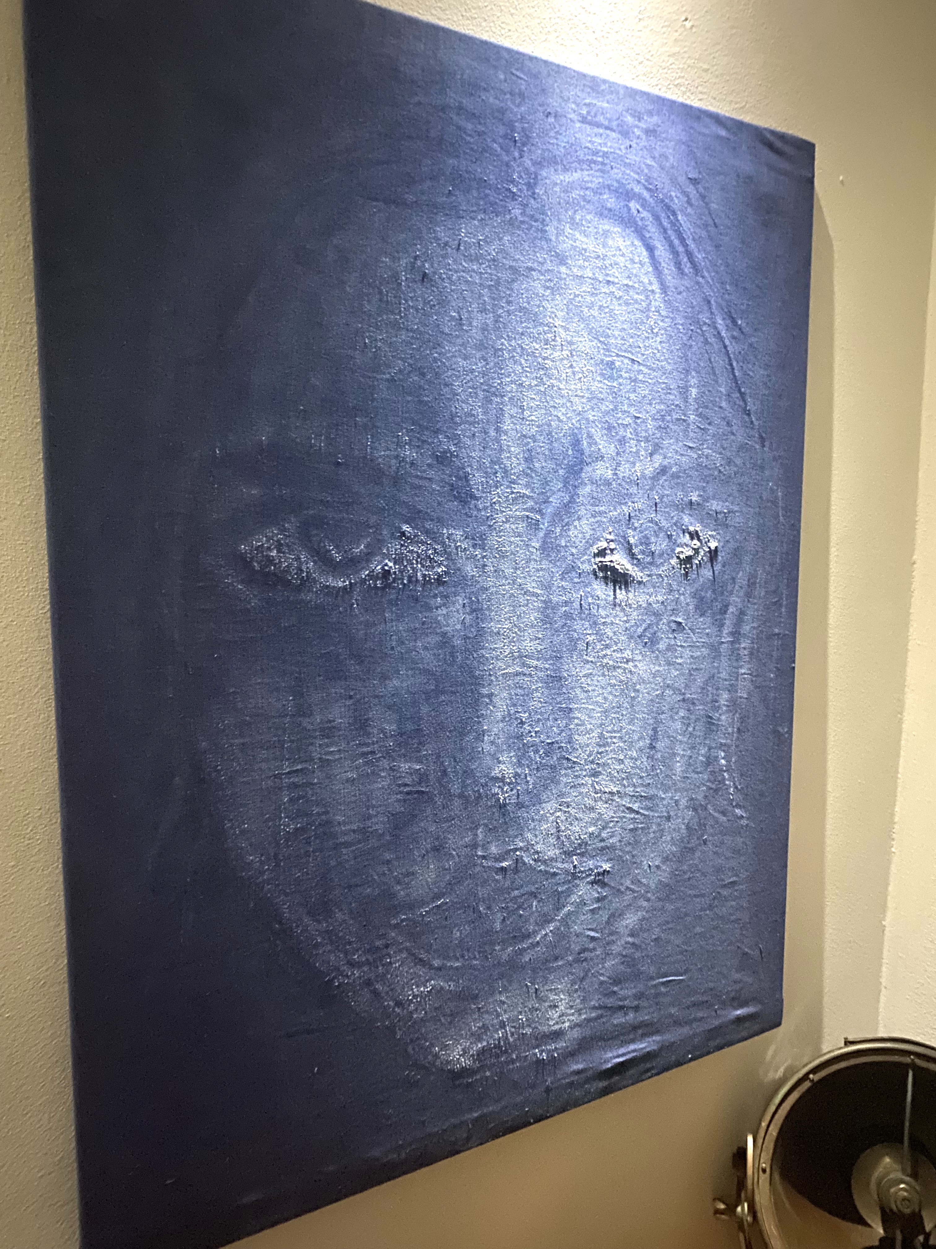 “Non utilizzo nessun tipo di pittura , le tele vengono lavorate con diverse tecniche abrasive che permettono all’ immagine di uscire dal tessuto con variabili intensita’ di luce e contrasto.”